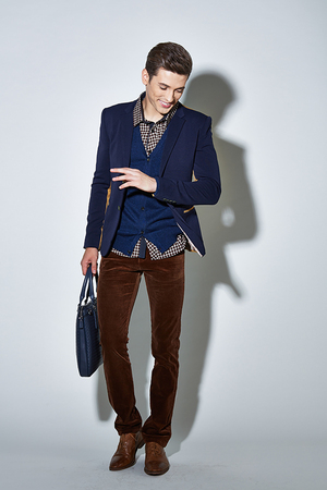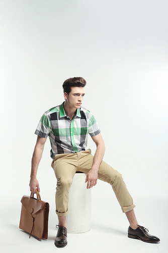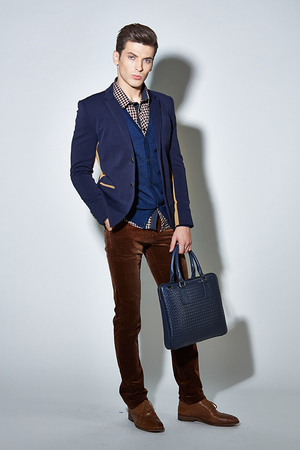 成熟西装外模拍摄 商务polo衬衣男装模特 眼镜墨镜箱包