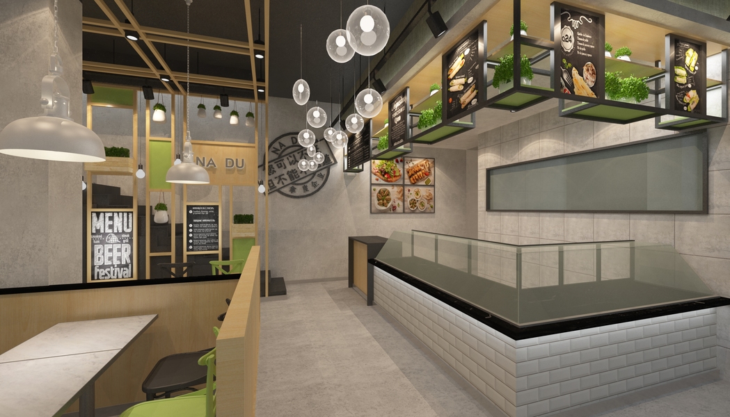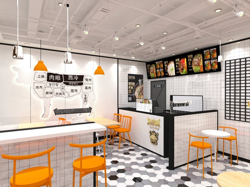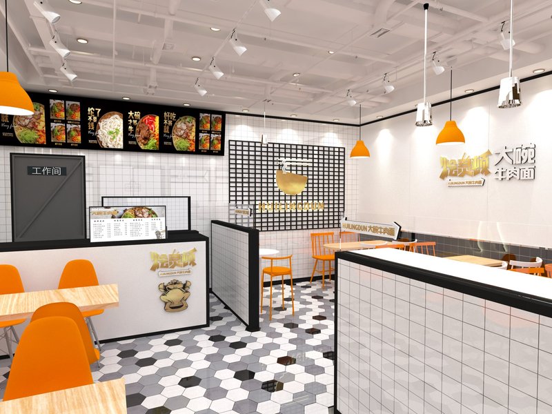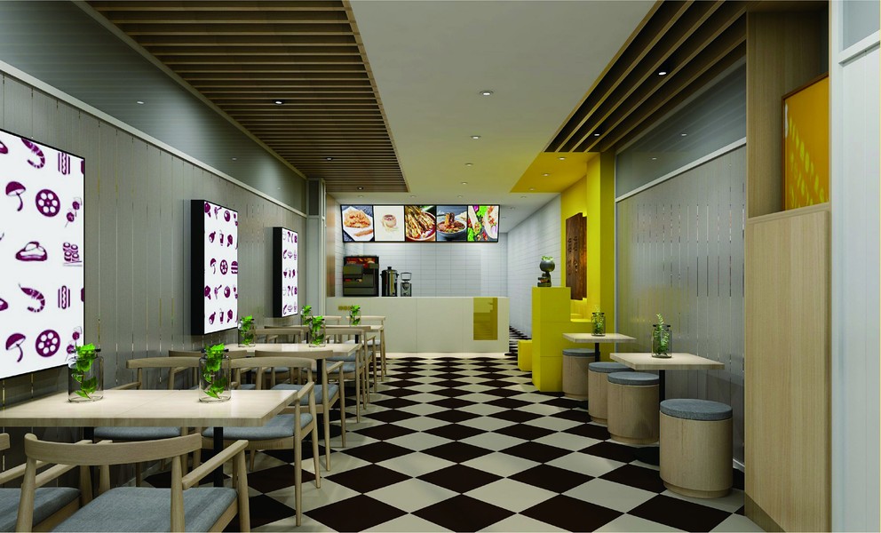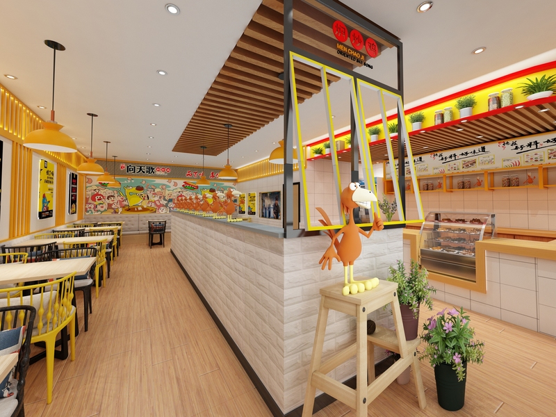 快餐厅设计 熊猫啵啵鱼米线粉丝店装修 众派思设计