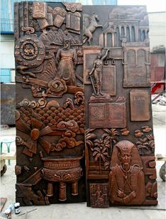 复古仿铜铝板雕刻文化艺术景墙浮雕壁画