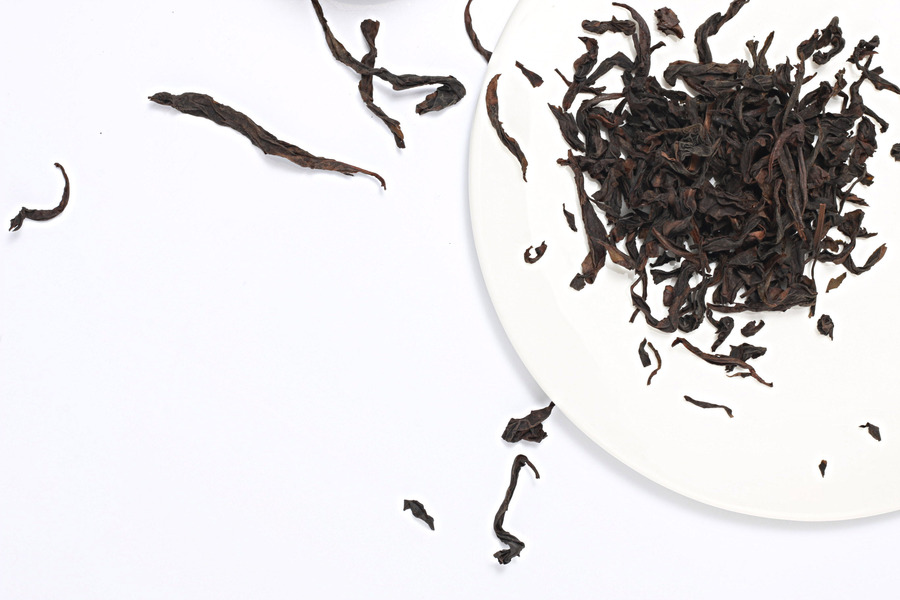 茶叶茶具-正山小种大红袍茶叶-紫砂壶-茶盘白背景拍摄