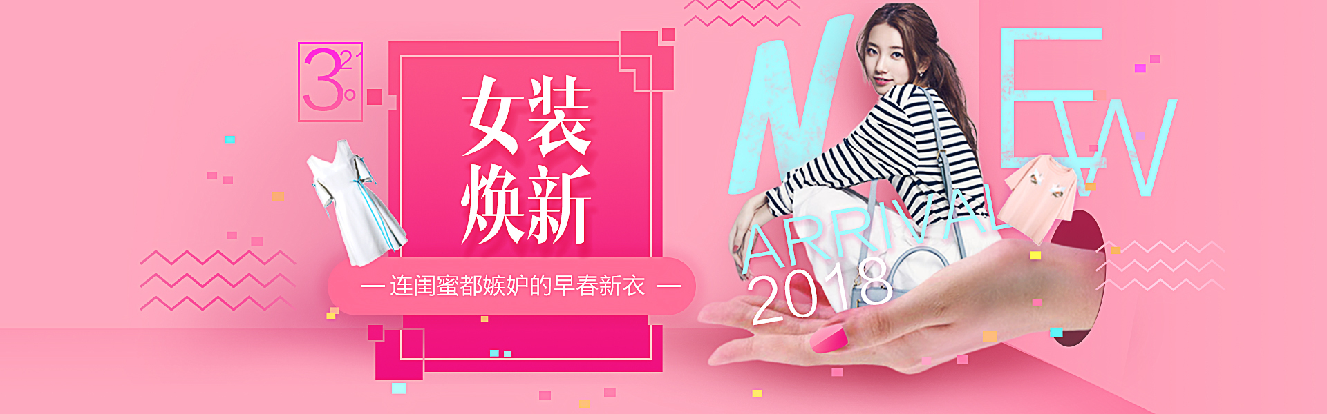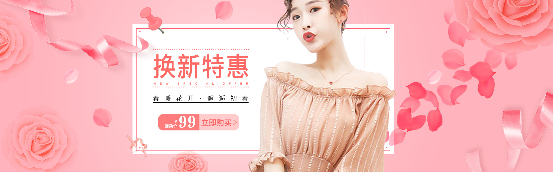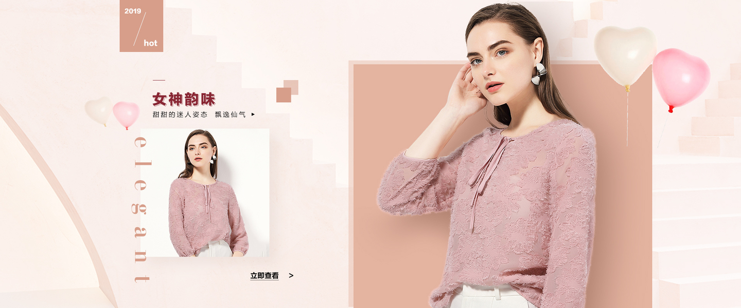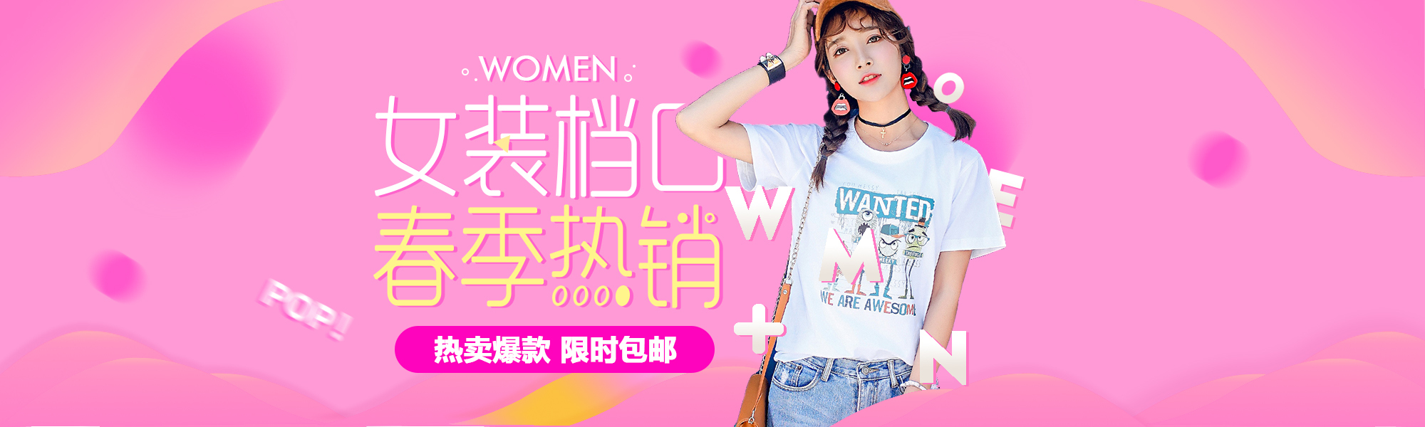 淘宝天猫首页欧美女装海报粉色甜美打底衫电商banner