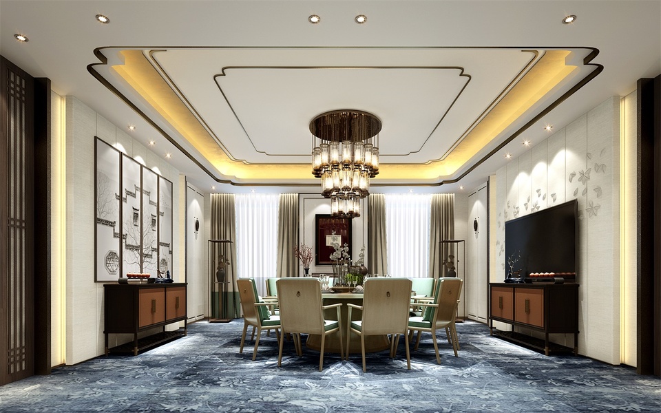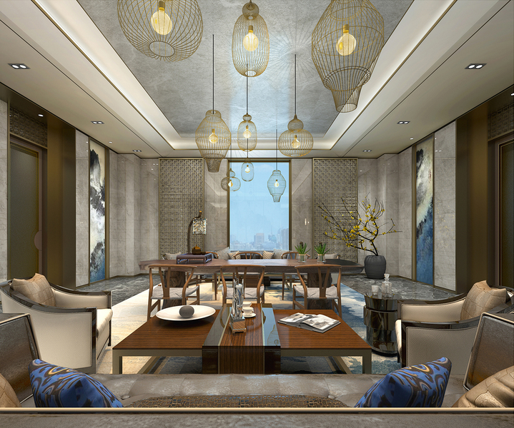新中式客餐厅效果图全景设计