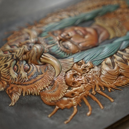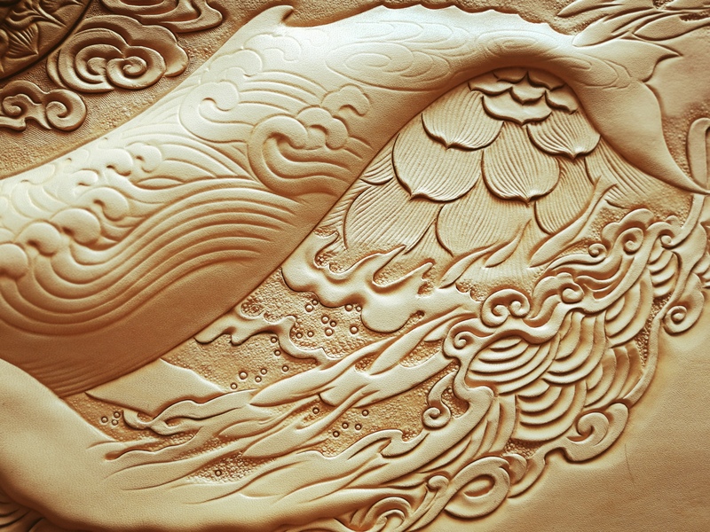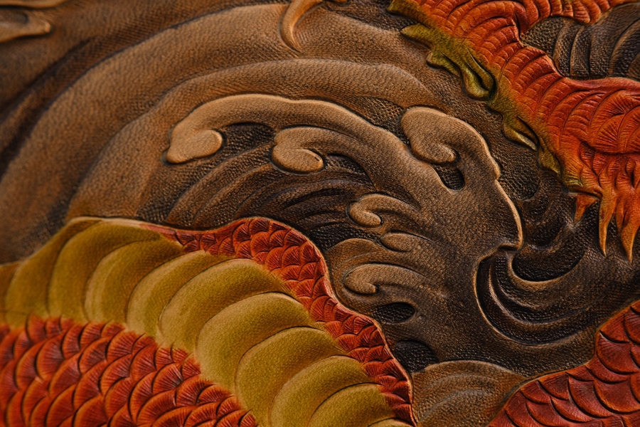 纯手工皮雕【大黑天】植鞣皮 手包 钱包