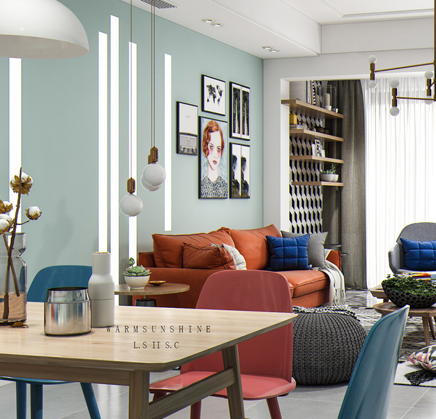 93㎡简约北欧风格新房装修,清新配色小三室!