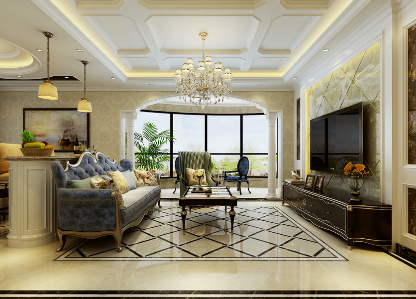 天津东易日盛-莱茵翠景法式风格135平装修效果图