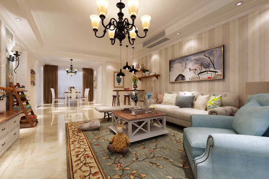 万科悦湾洋房底跃装修案例-万科悦湾美式风格设计效果