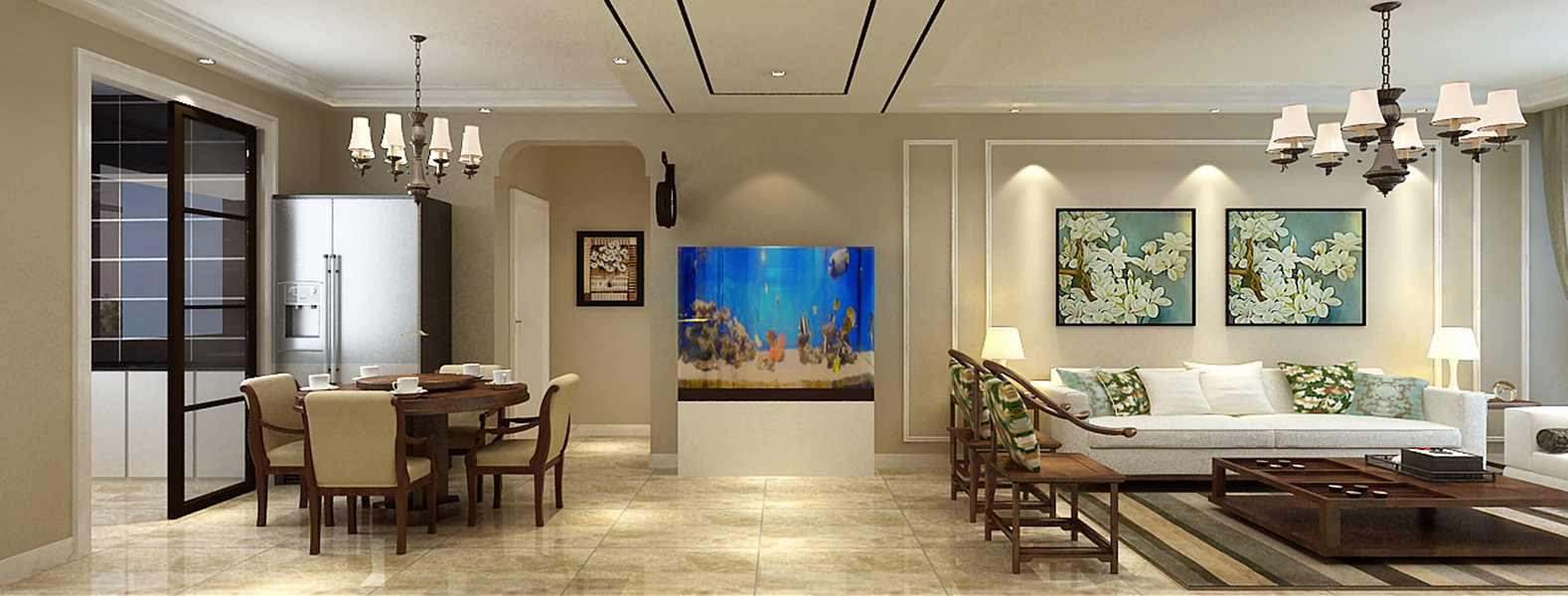 天津东易日盛-融公馆新中式风格220平米装修效果图