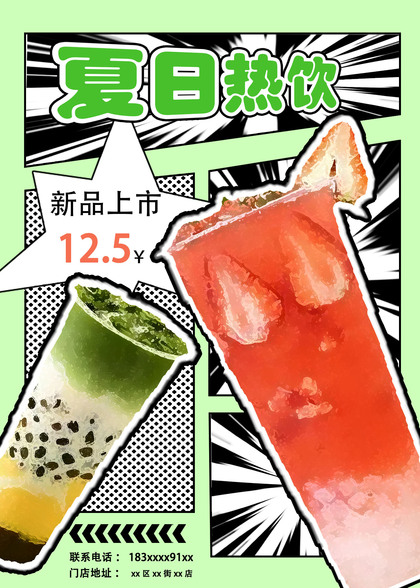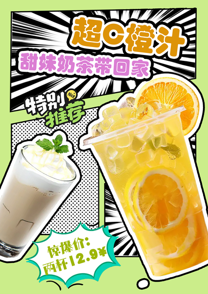 漫画风格奶茶海报