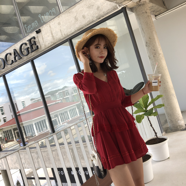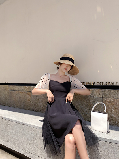 模特周洛希 春夏款半身裙拍摄 蕾丝雪纺连衣裙短裙 T恤