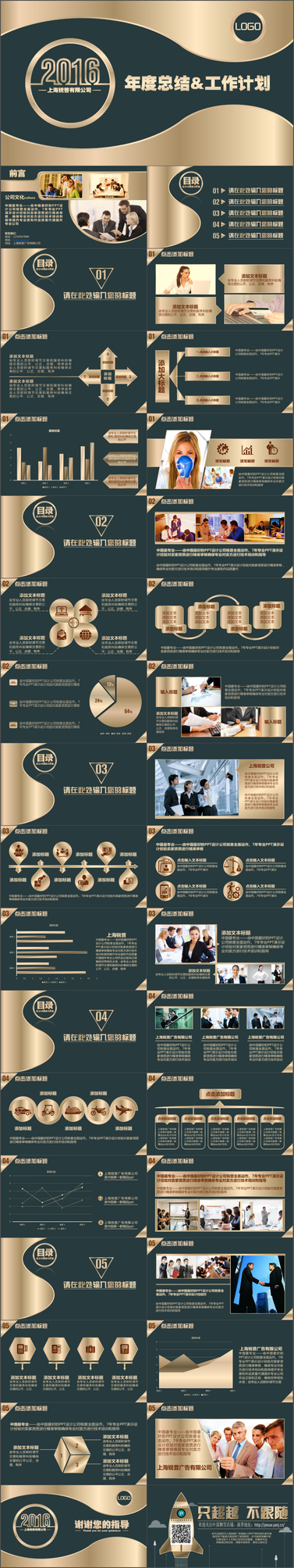 【中文】2016时尚商务演示模板(金+绿+占位符)