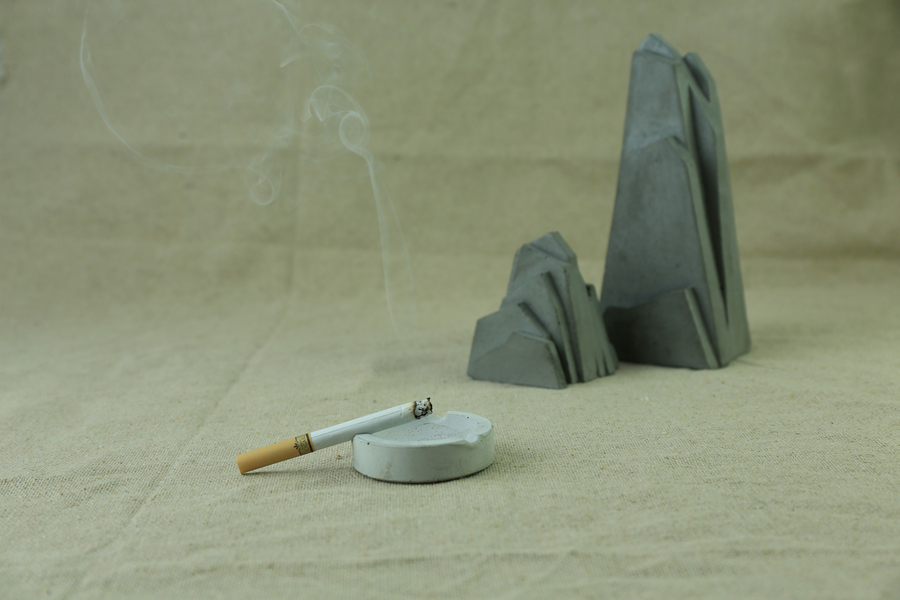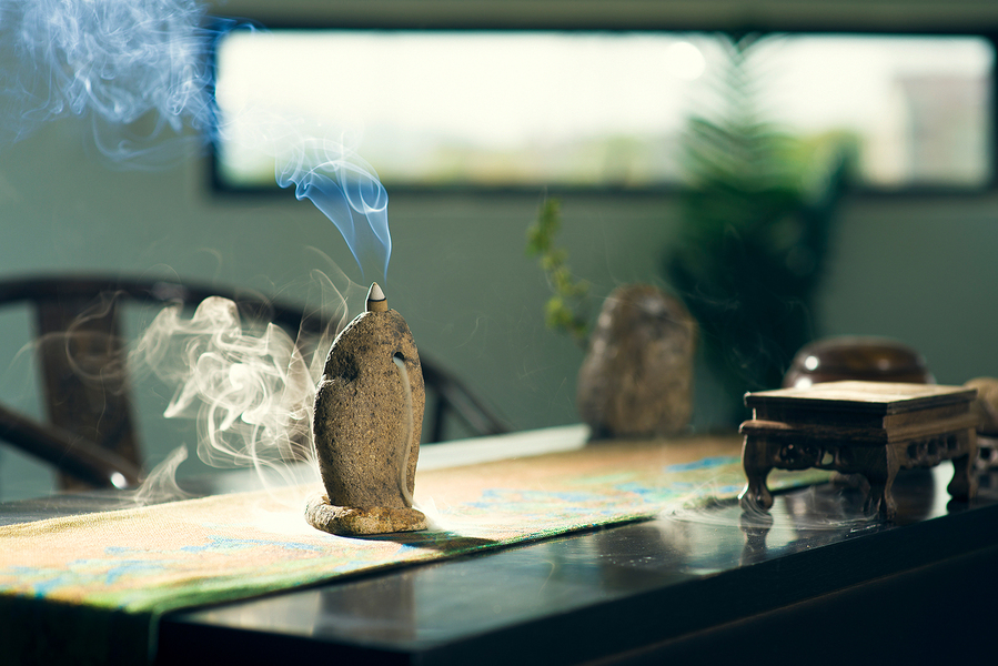石头打了一个立式香炉 室内桌子上摆件 鹅卵石原始石头