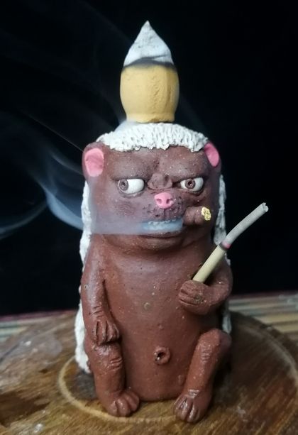 塑新斋潘纪坤手作彩塑陶公仔手捏茶宠平头哥香插摆件