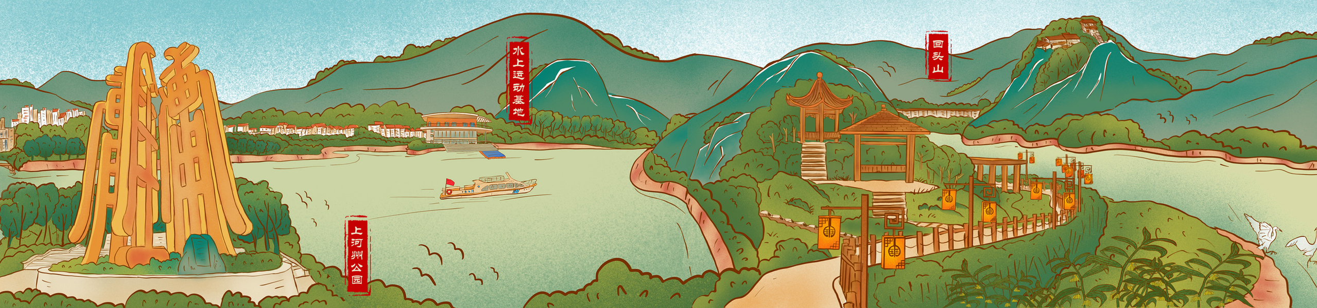 广州长洲岛标志性建筑系列插画