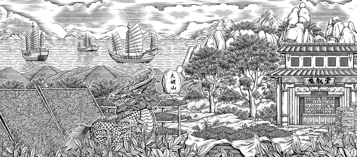 制茶 茶树 太姥山 茶叶商队 版画插画手绘