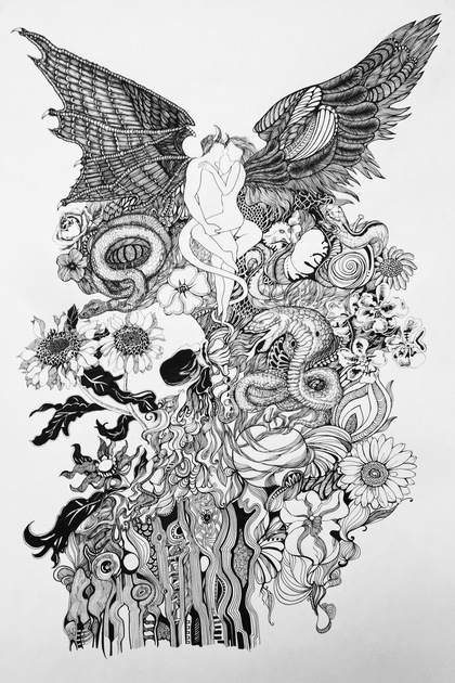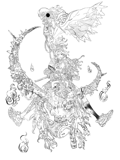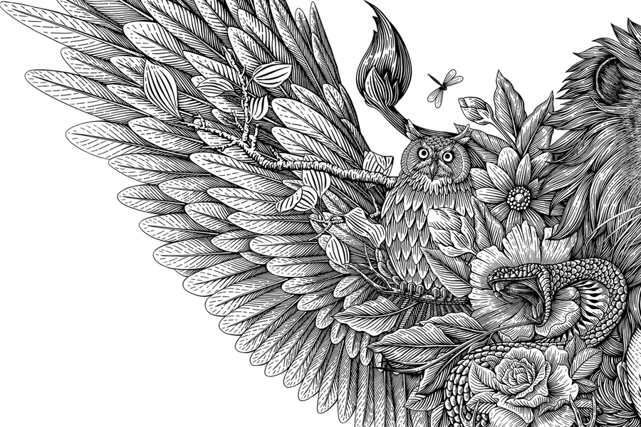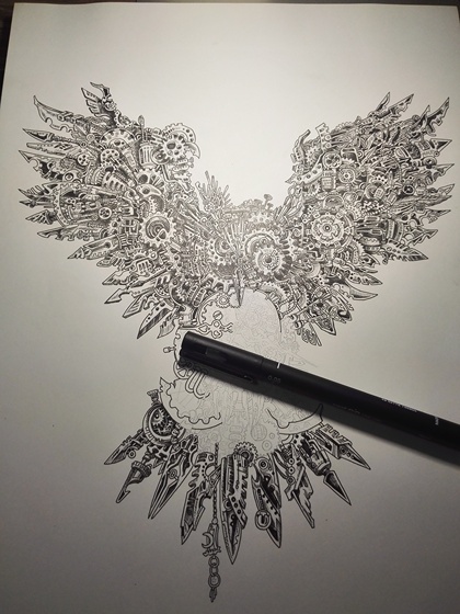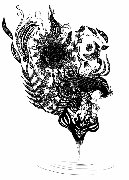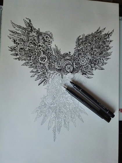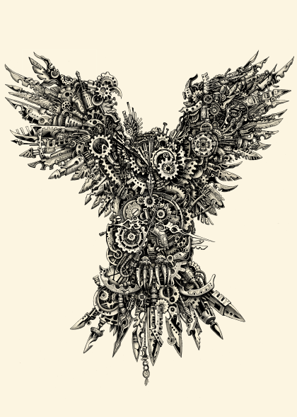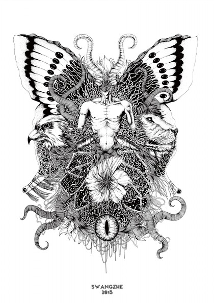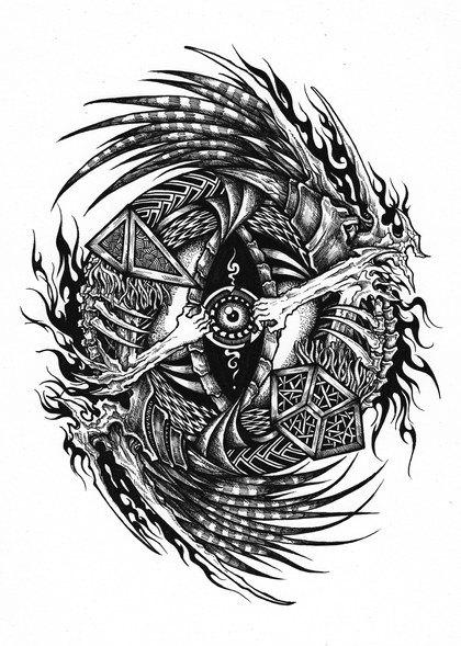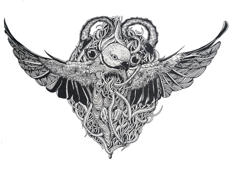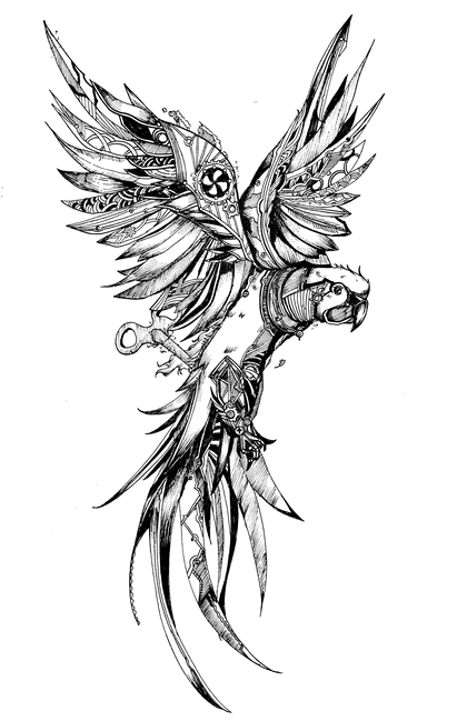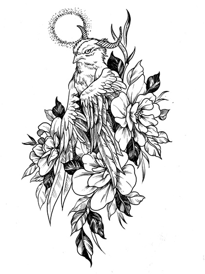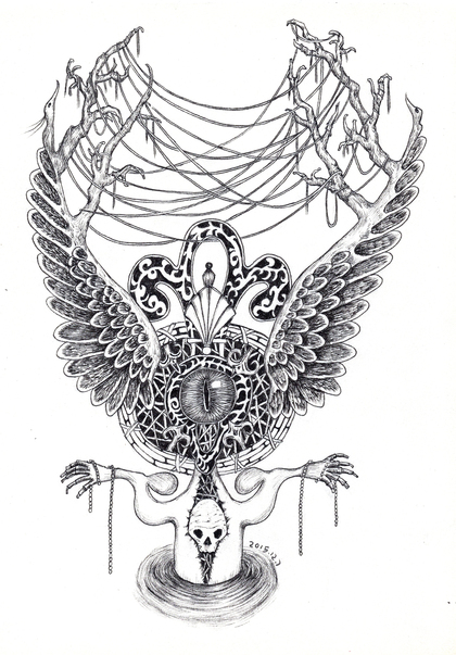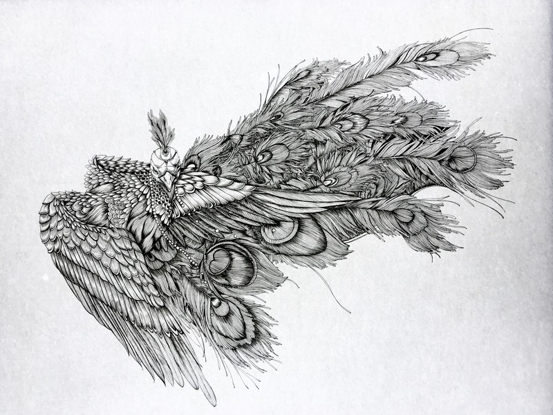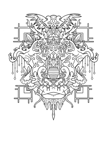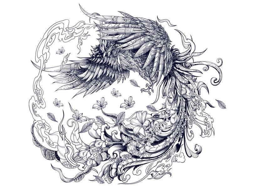 【镜像荆棘鸟】插画 图案 -- 翻新一张老草图 ~