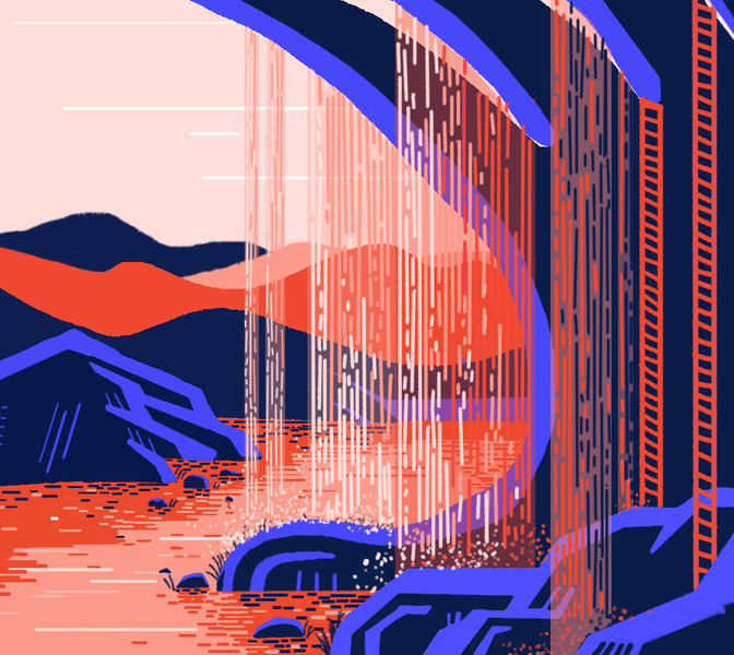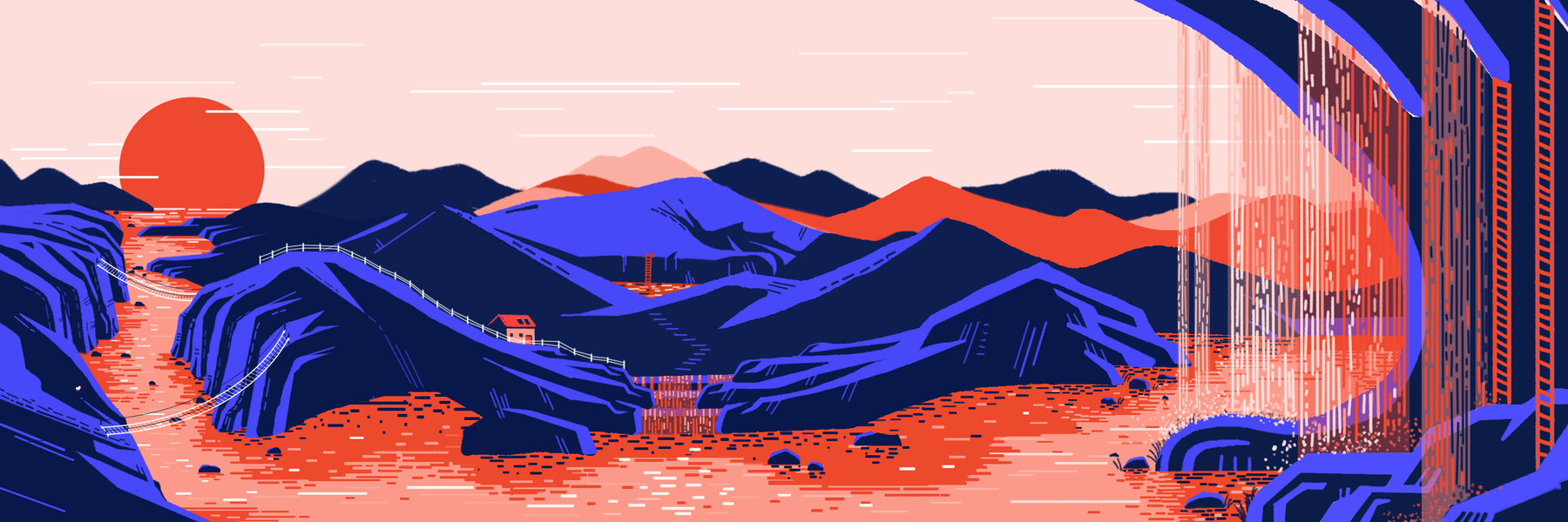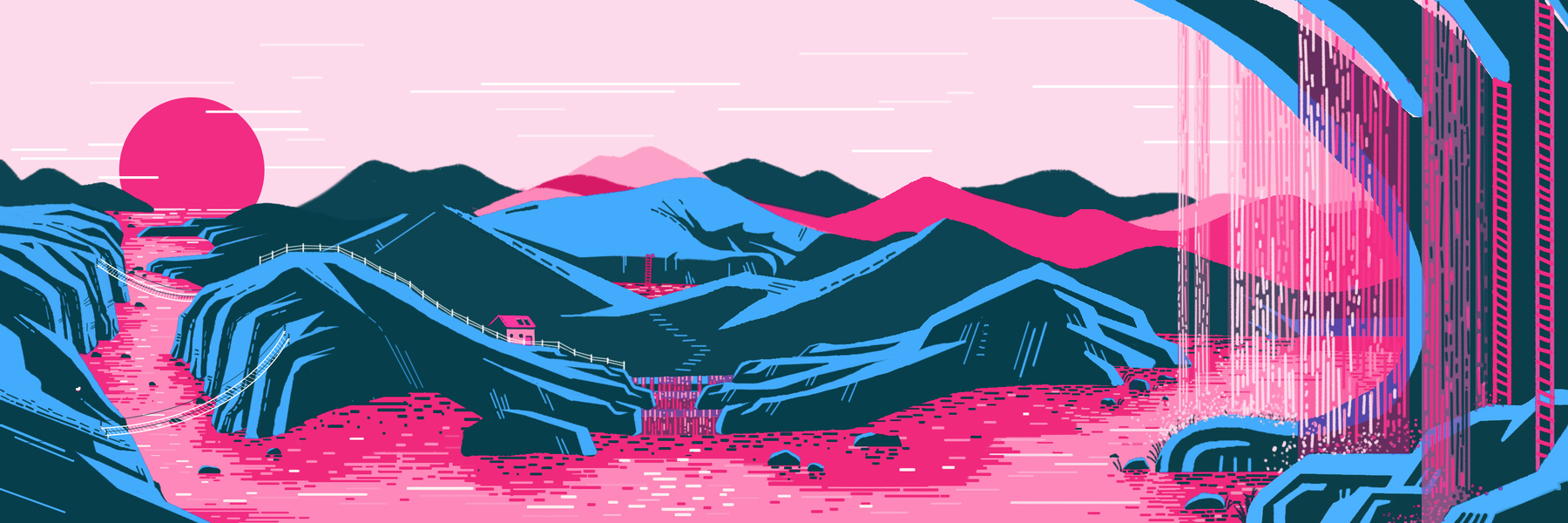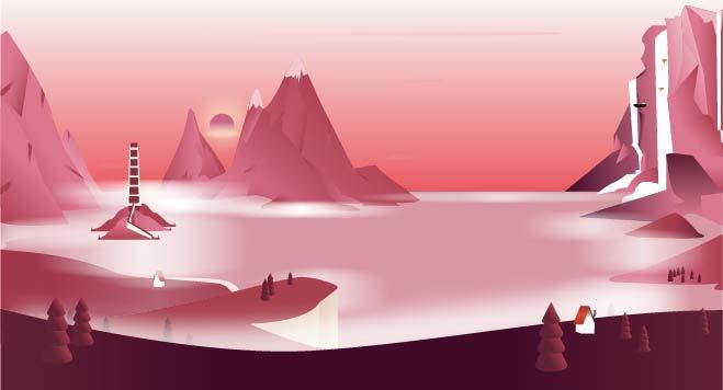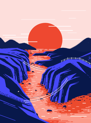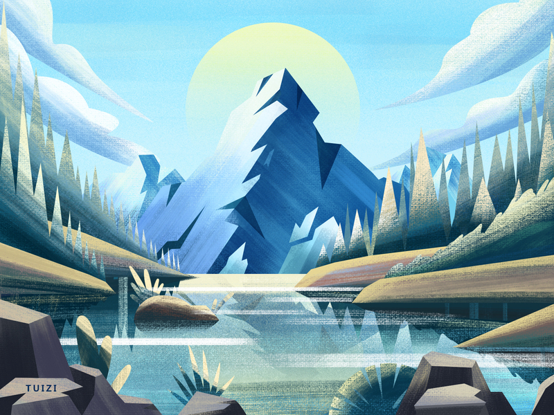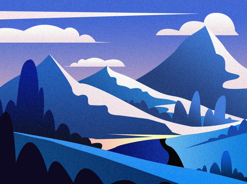 AI山景噪点插画临摹