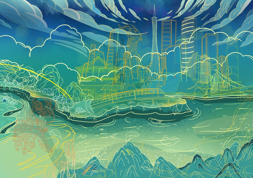 国潮风城市插画系列——广州