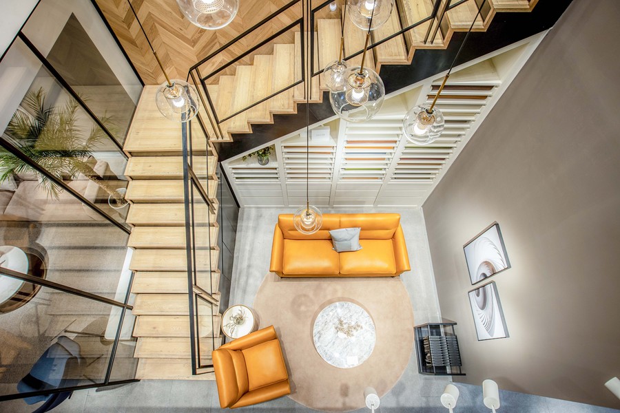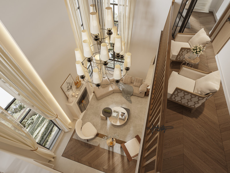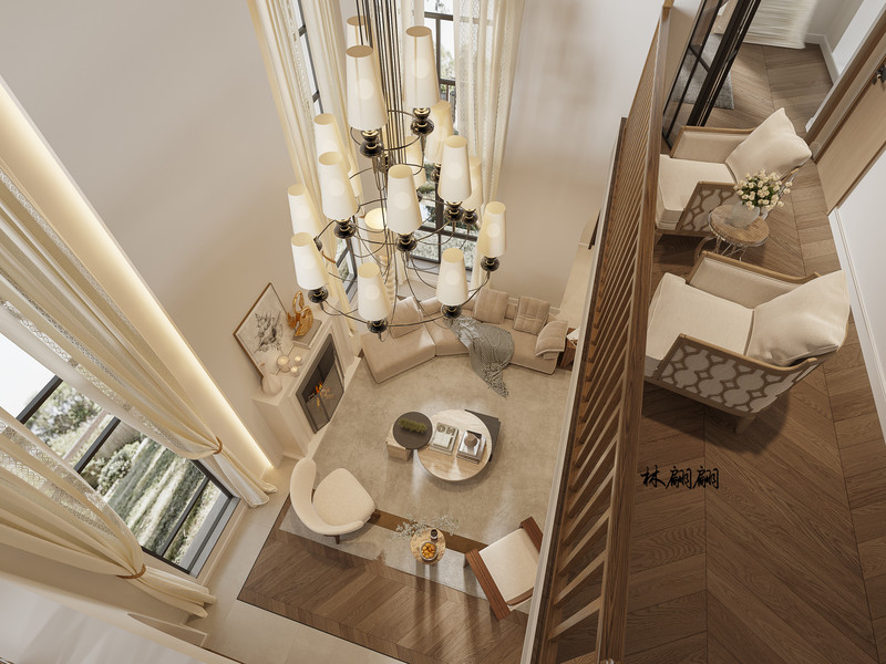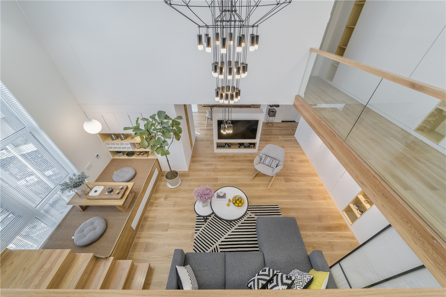 远程设计,福建宁德96平扩大到209平,俯视看客厅极美