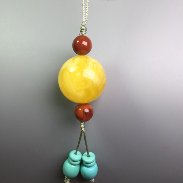 蜜蜡搭配绿松挂件——龙掌柜文玩