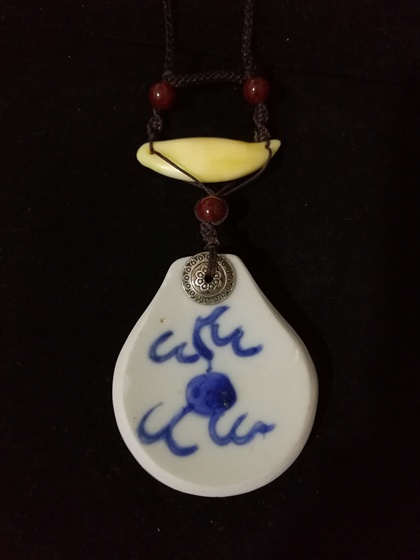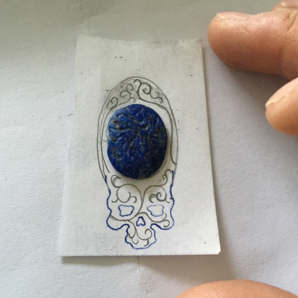金丝缠枝莲纹镶老青金石花片异形骷髅银项链