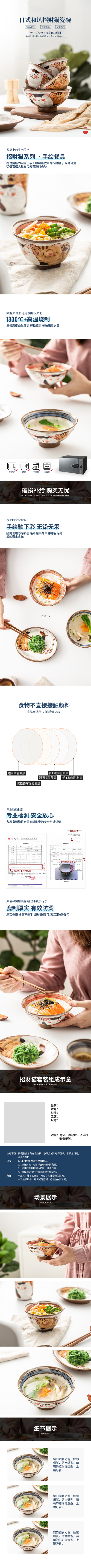 日式和风招财猫瓷碗详情页