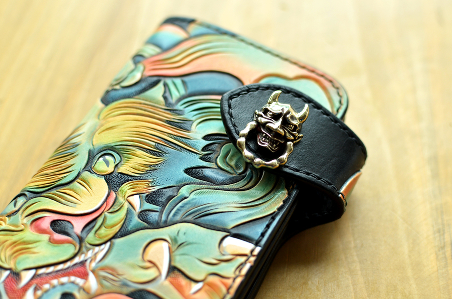 【革也GEYE】作品欣赏 福狮绘雕花长夹