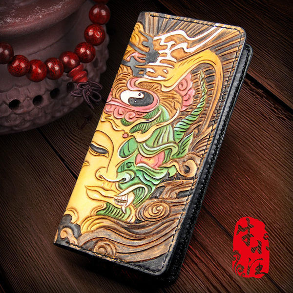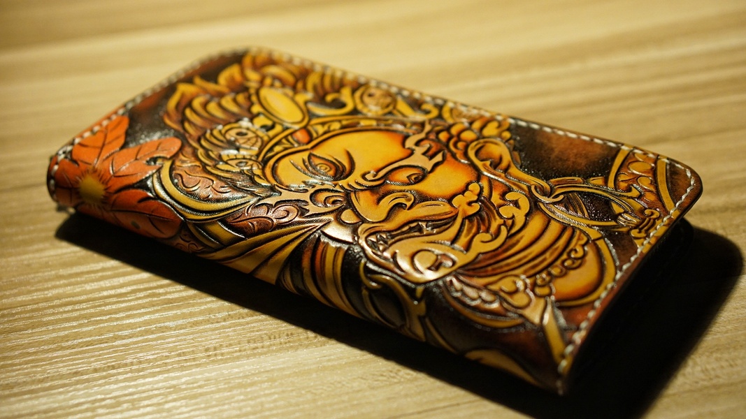 纯手工皮雕【大黑天】植鞣皮 手包 钱包