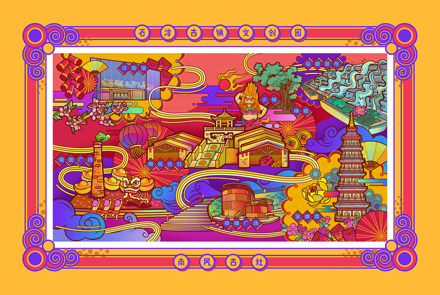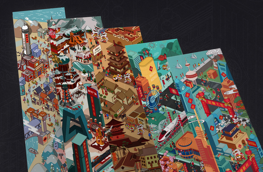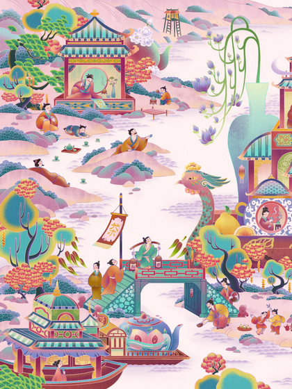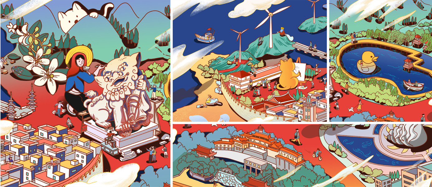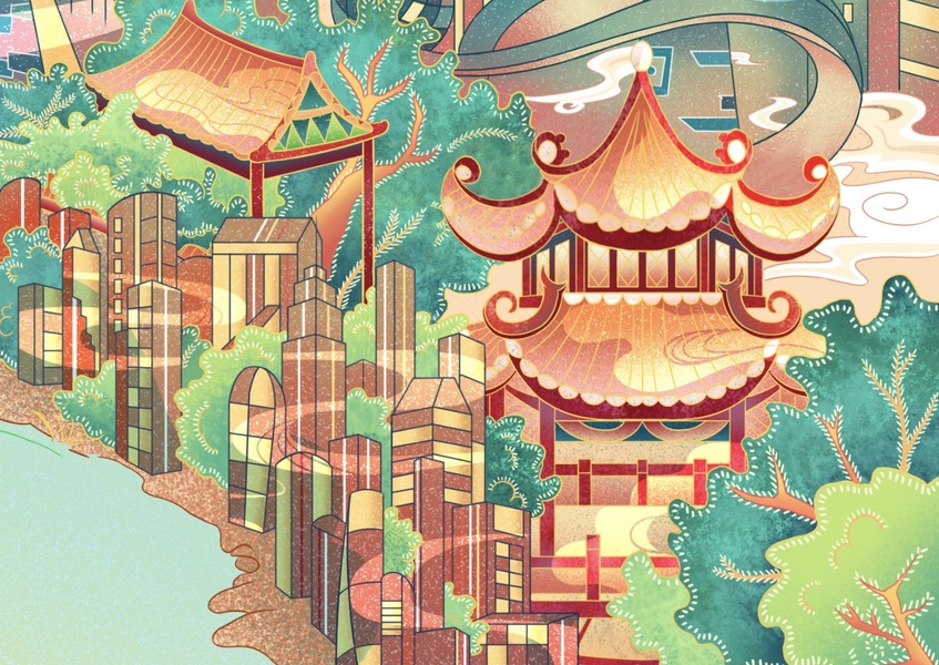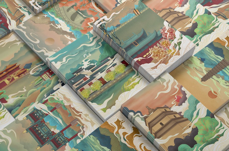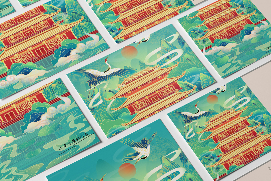 校园建筑中国风插画系列(已商用,禁抄袭)