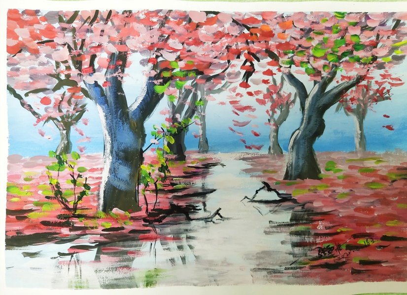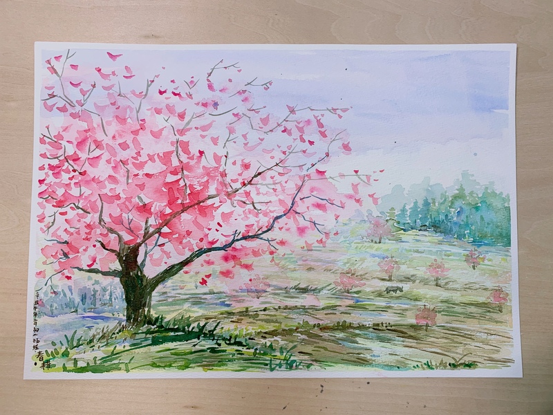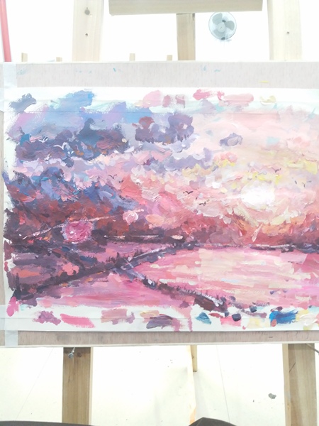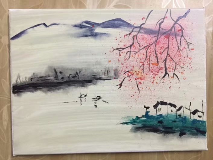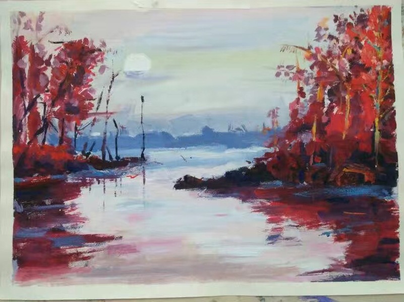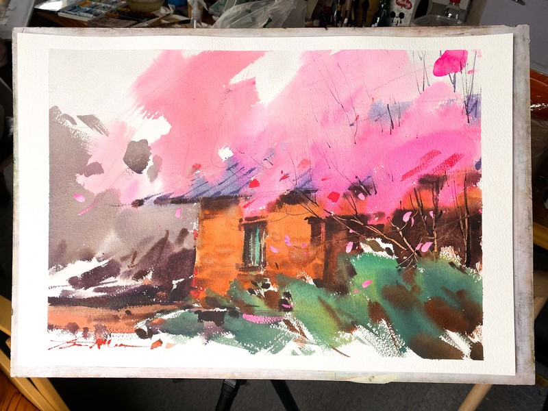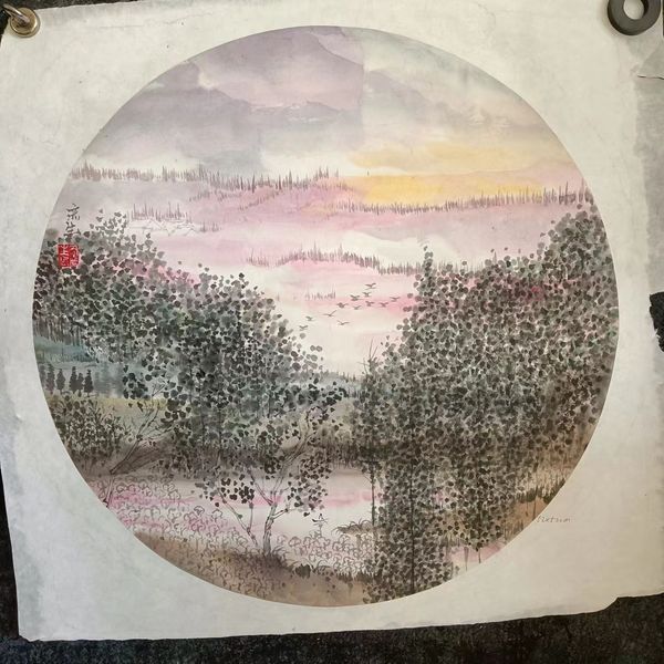 天外披晚霞,52*52cm,纸本水墨颜色已托