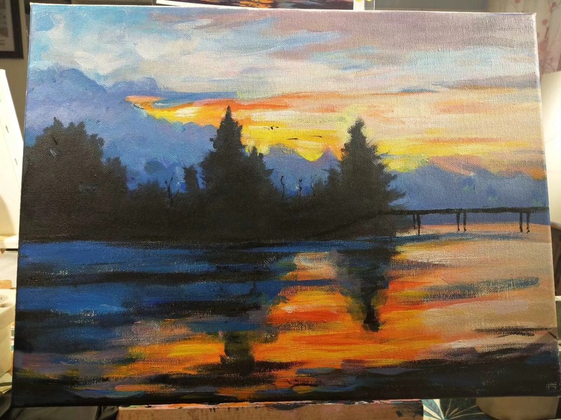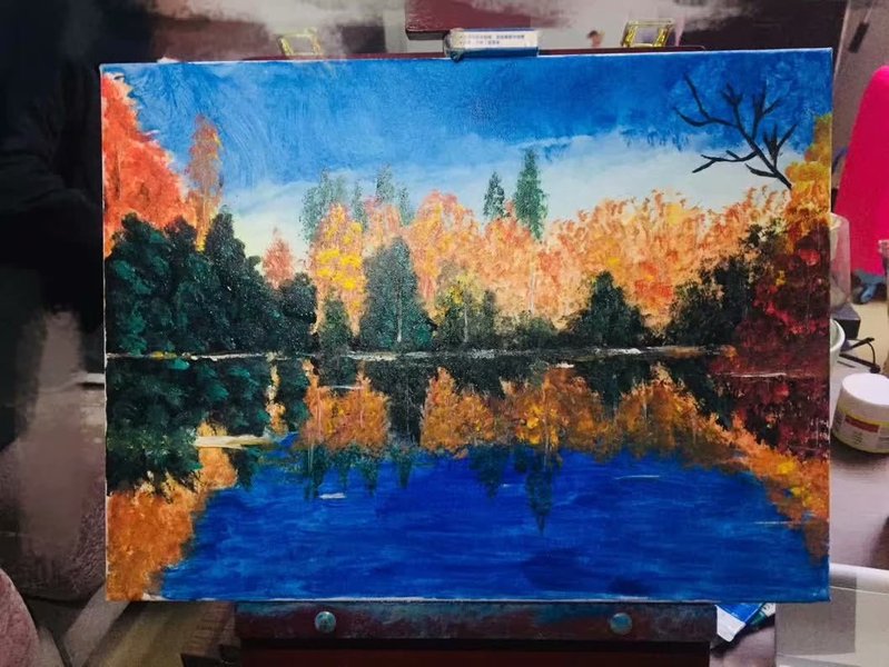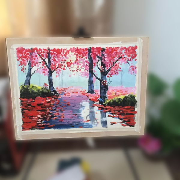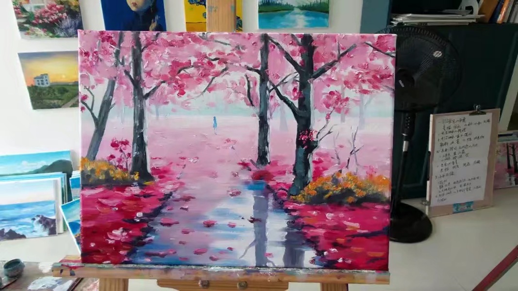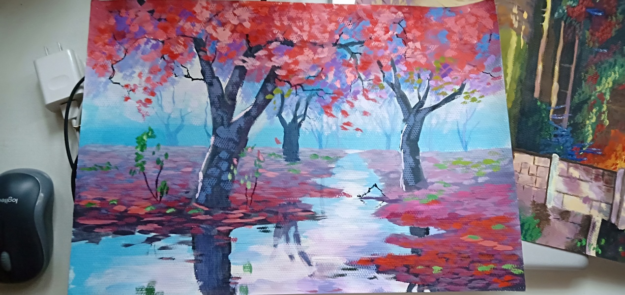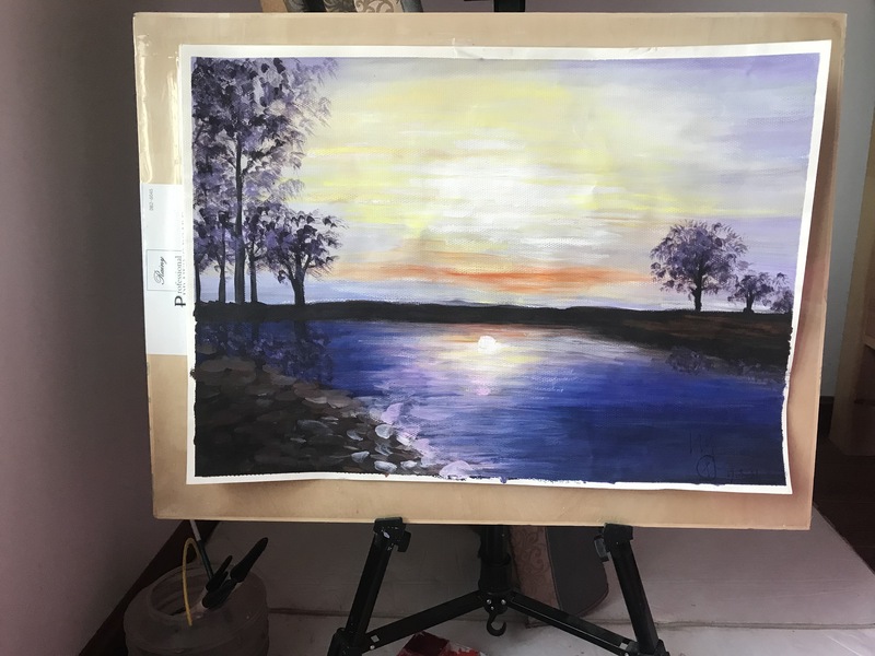 天外披晚霞,52*52cm,纸本水墨颜色已托