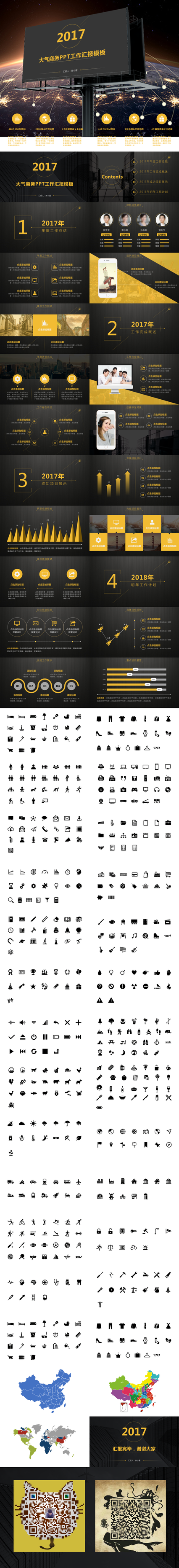 【挥霍】黄色大气质感简约线条商务工作汇报实用扁平化PPT模板