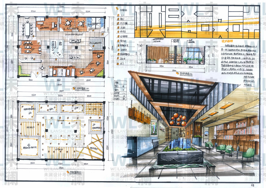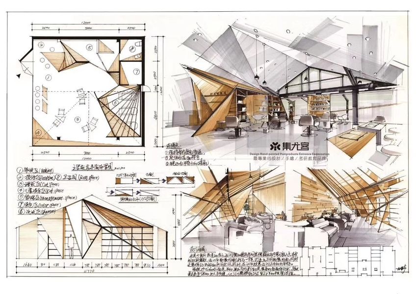 【集尤客考研快题分享】孙大野老师室内快题设计手绘