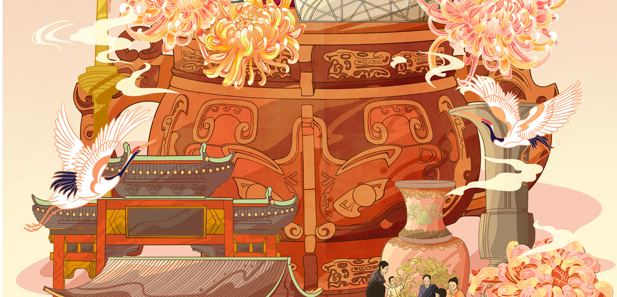《器皿与城市—西安、北京》《非遗乐器—古琴》|插画