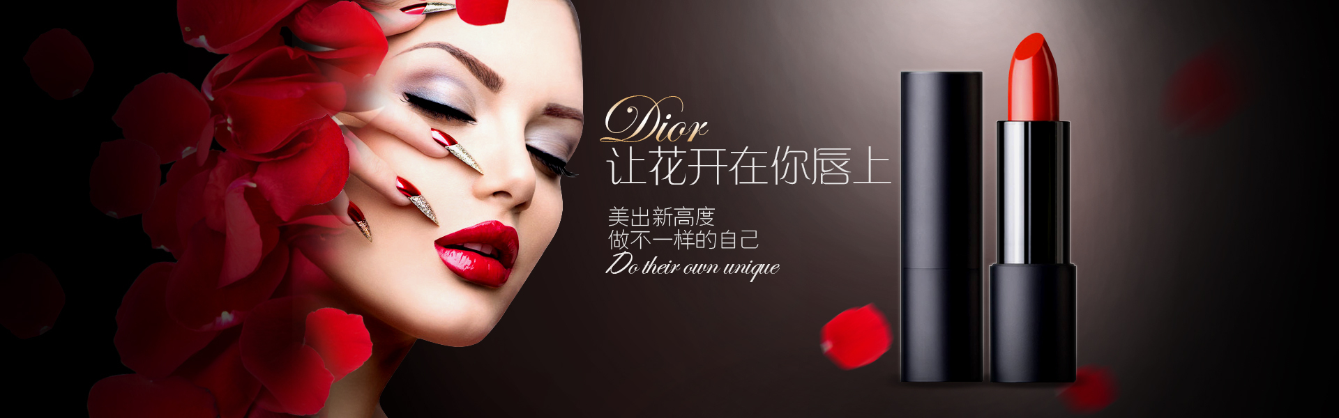 口红、banner、花瓣、红色、广告轮播图