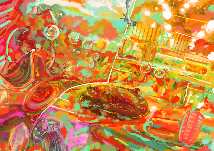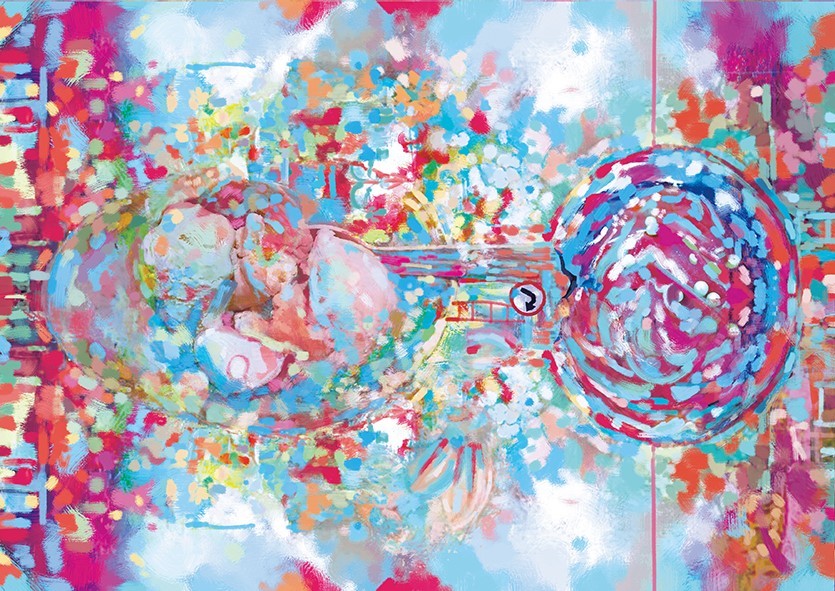 刘勇良抽象彩墨作品“远古的呼唤”及局部