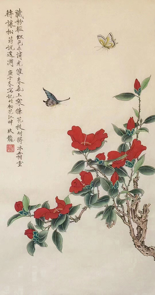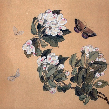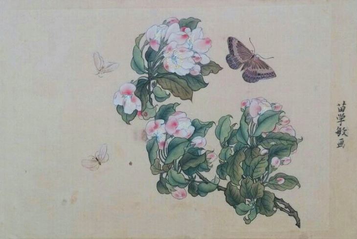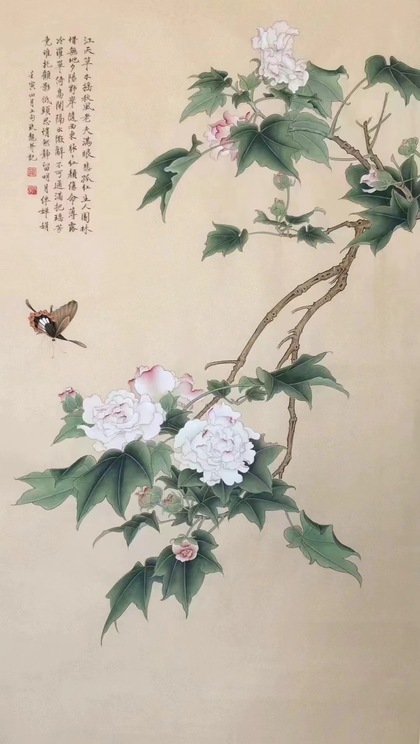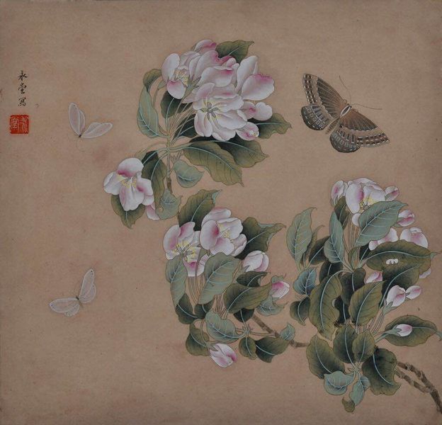 《 海棠蛱蝶图 》工笔画