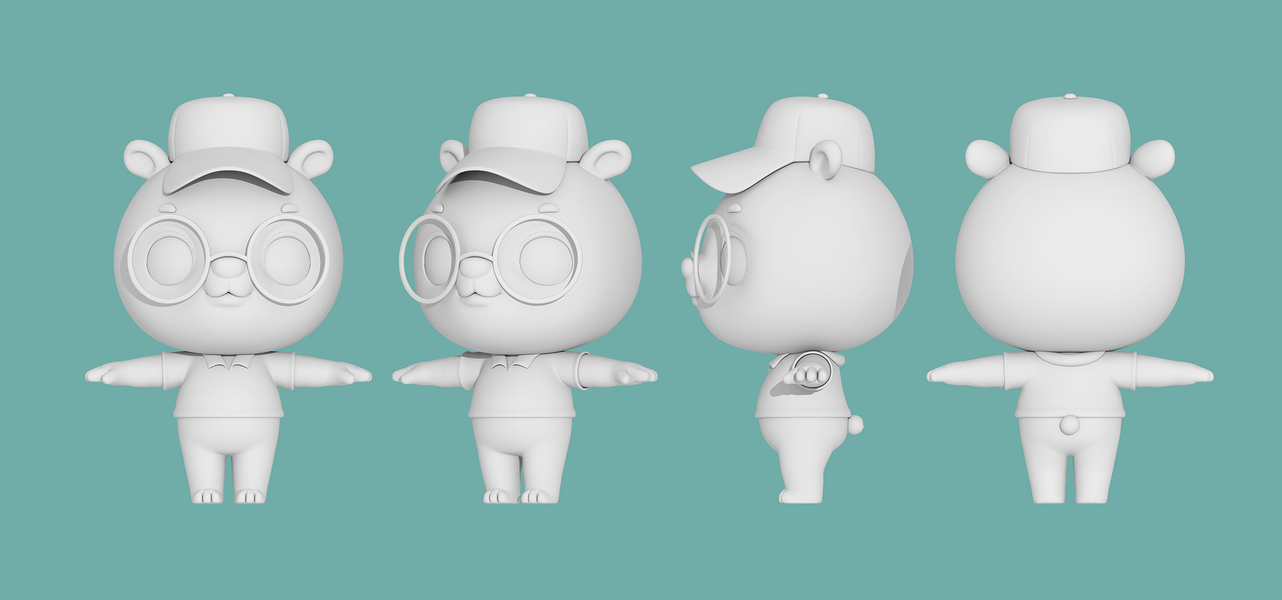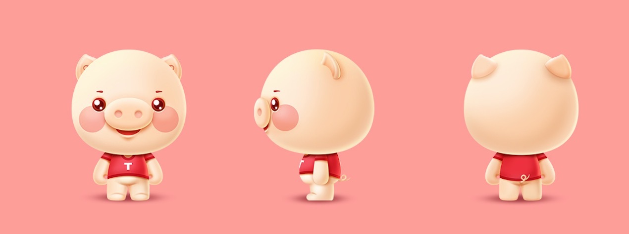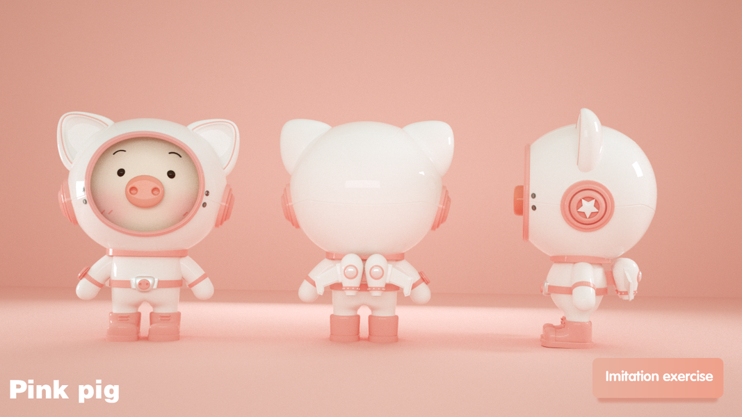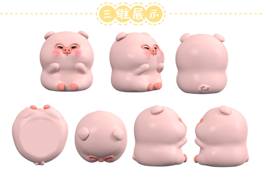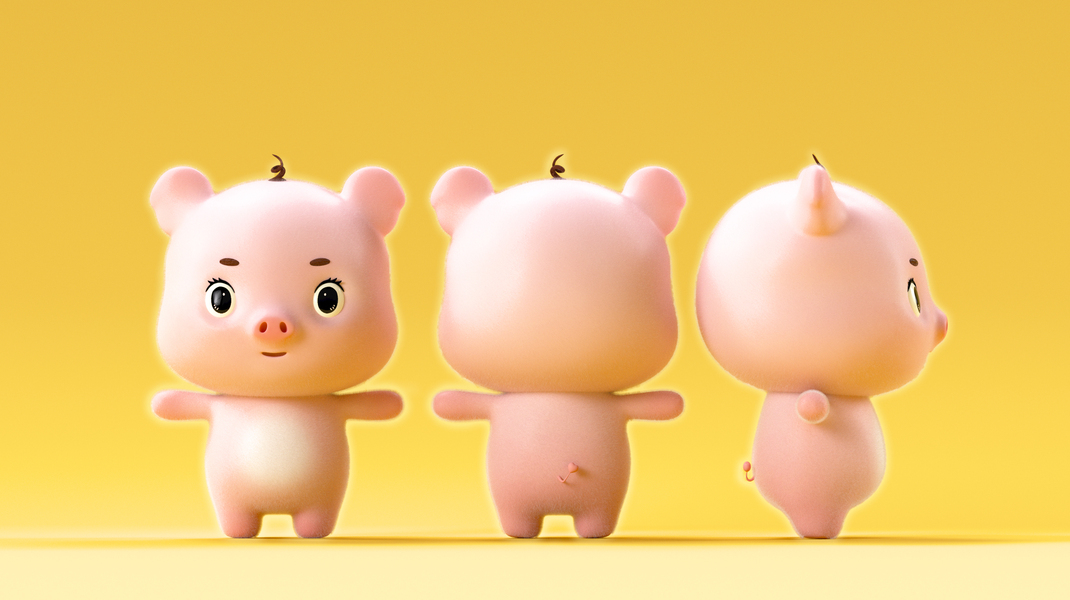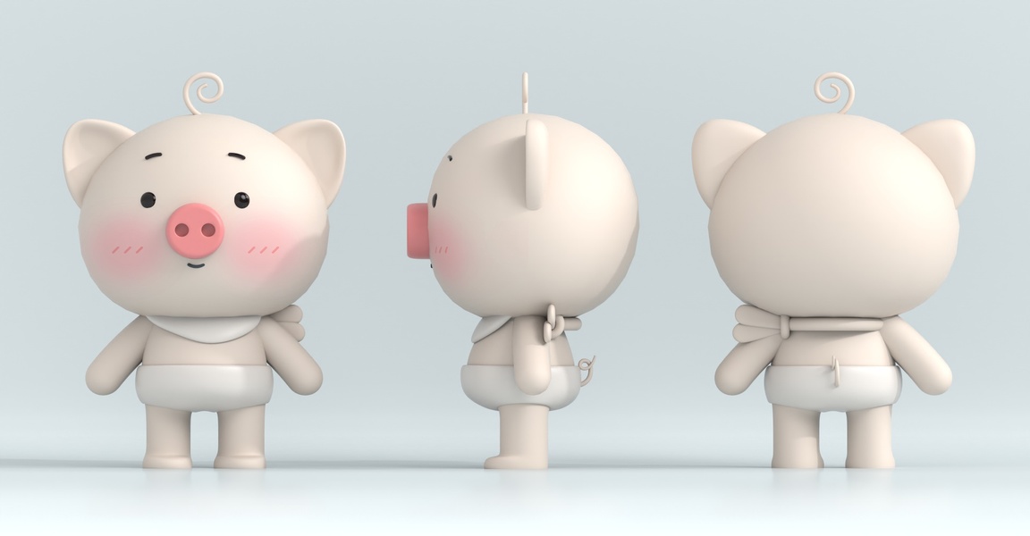 C4D|小猪公仔三视图|建模渲染