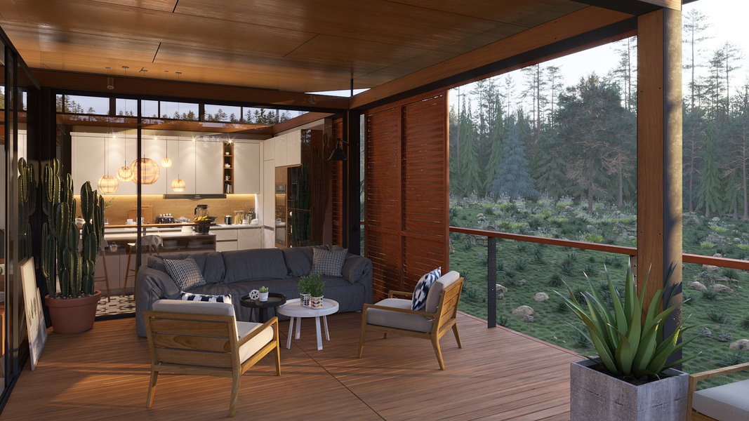 原木风温馨现代别墅,整个空间给人传递舒适的美感