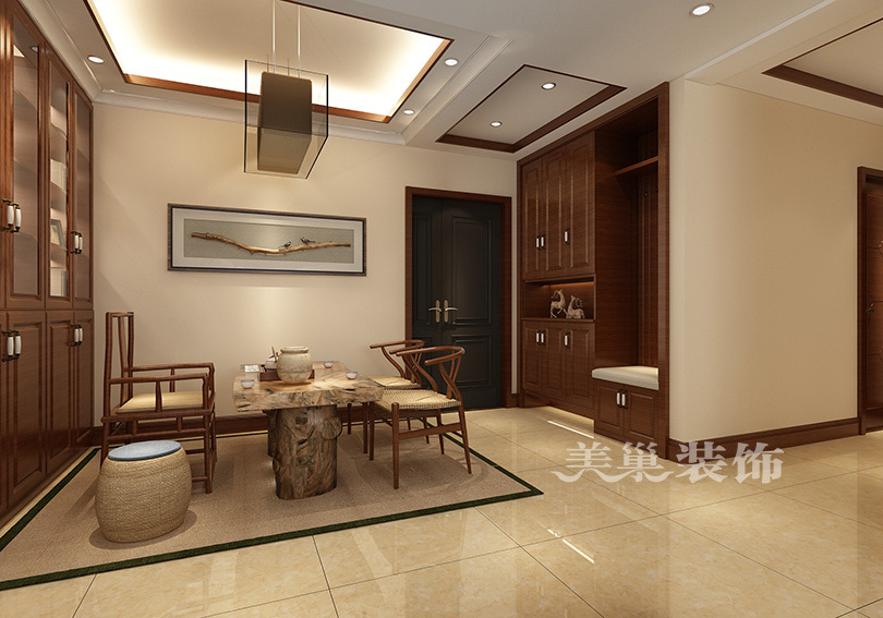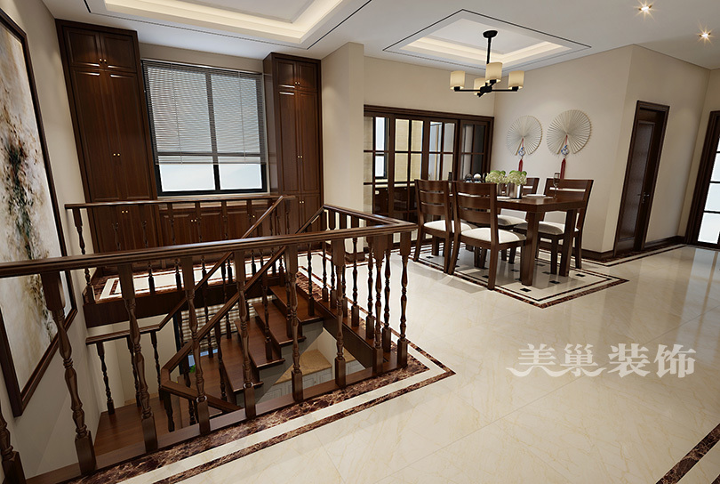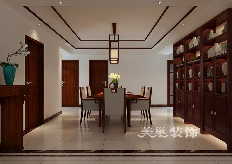 美巢装饰:居易西郡原著装修164平三房-中式雕花与隔段