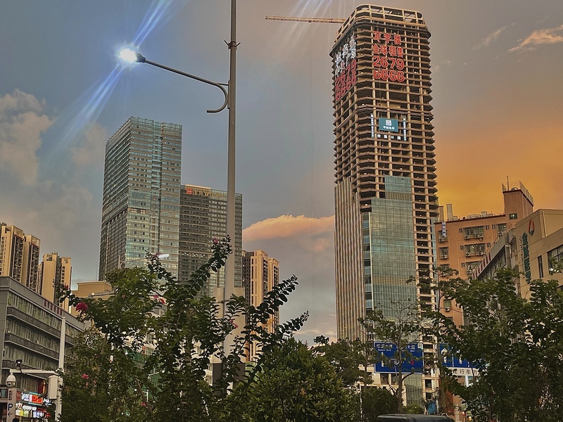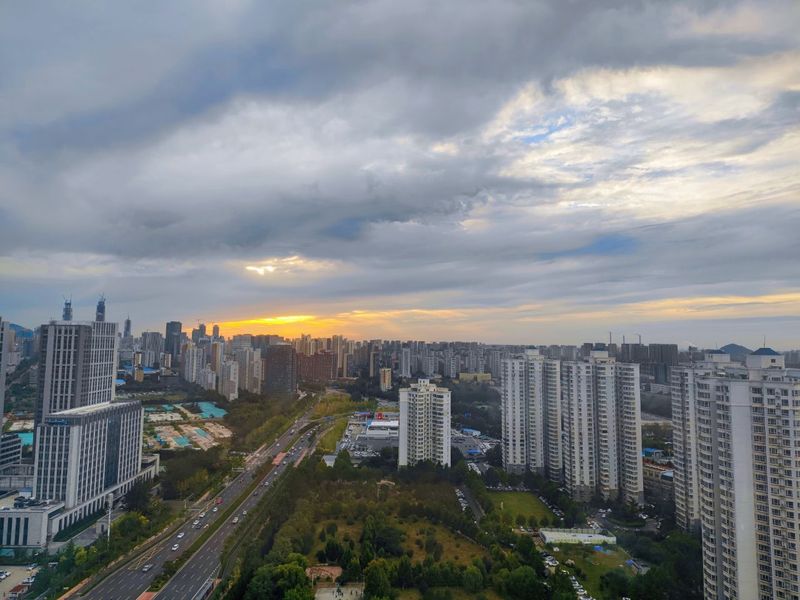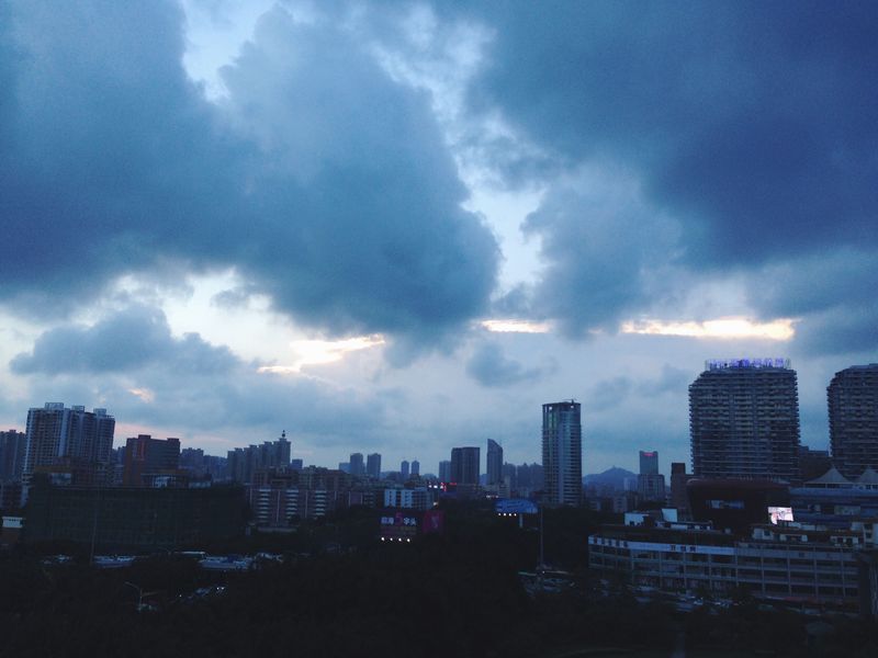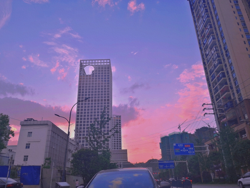 在城市看晴朗阳光,舒卷云霞