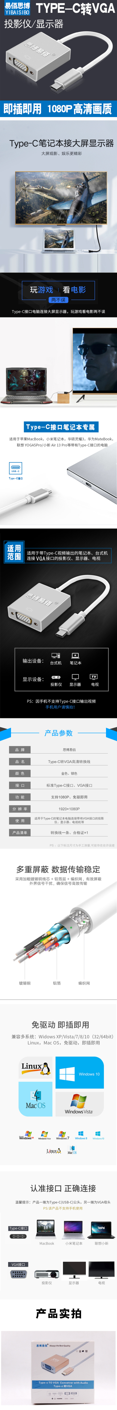 type-c转VGA 数据线