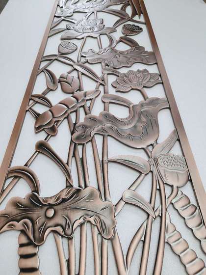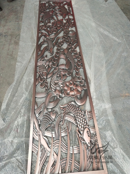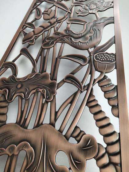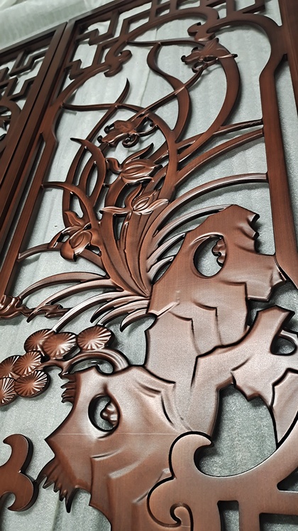 铝板雕刻红古铜屏风 数控双面浮雕工艺