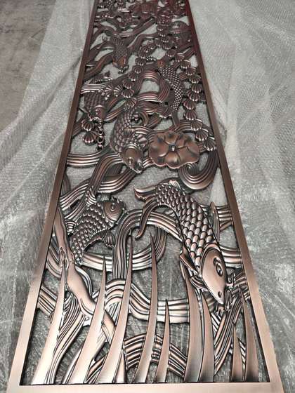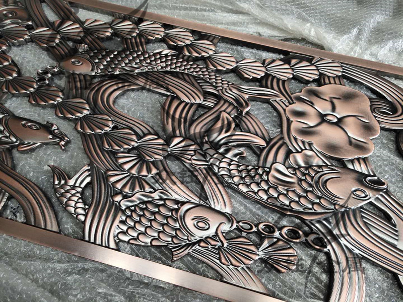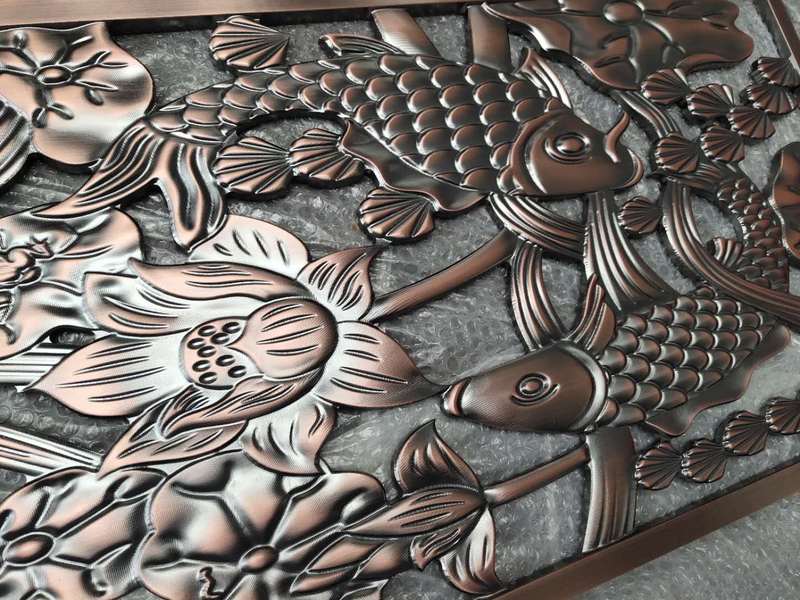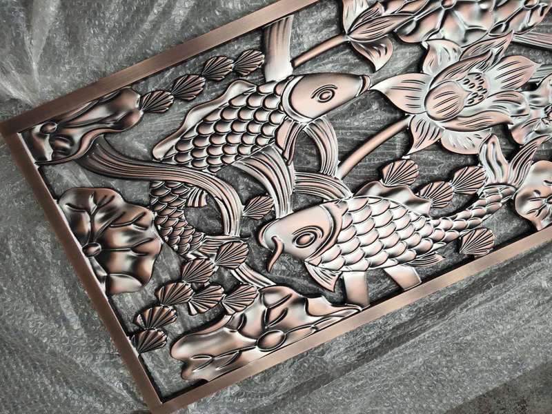 12厘铝板双面浮雕“年年有鱼”隔断屏风对生活美好憧憬