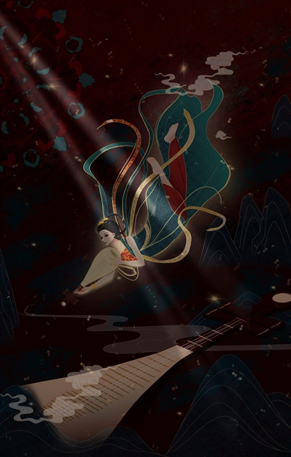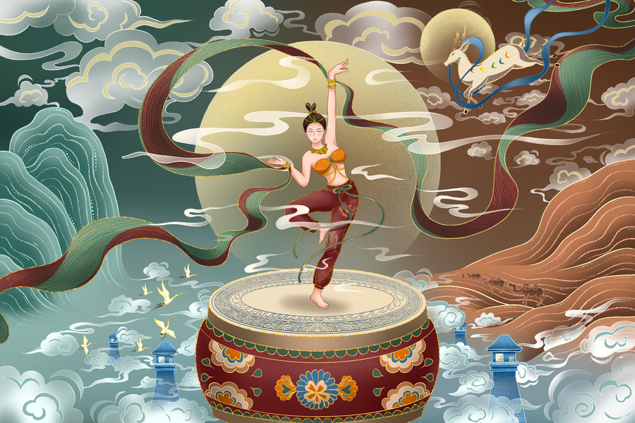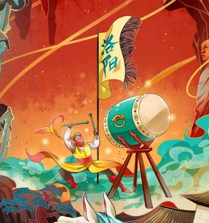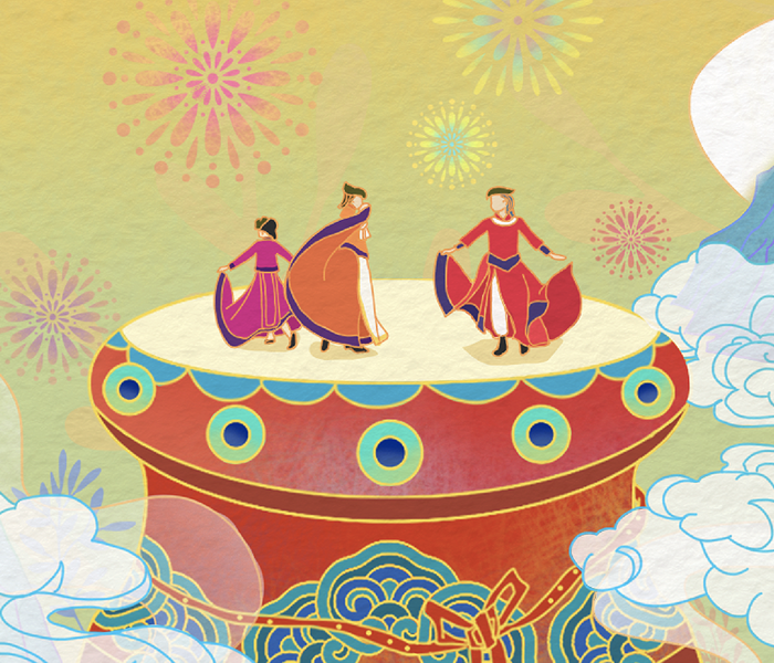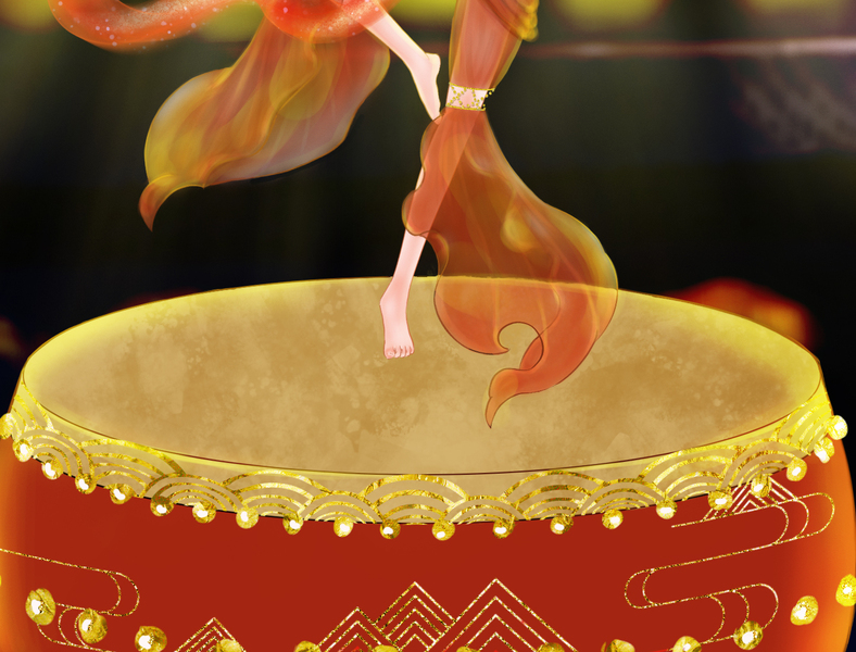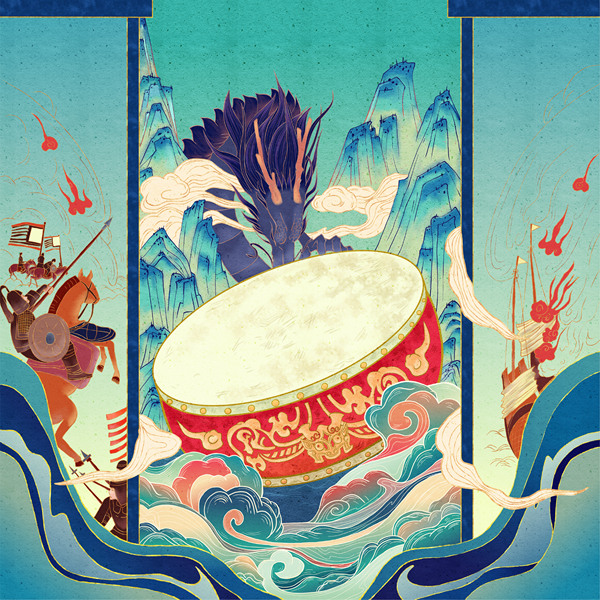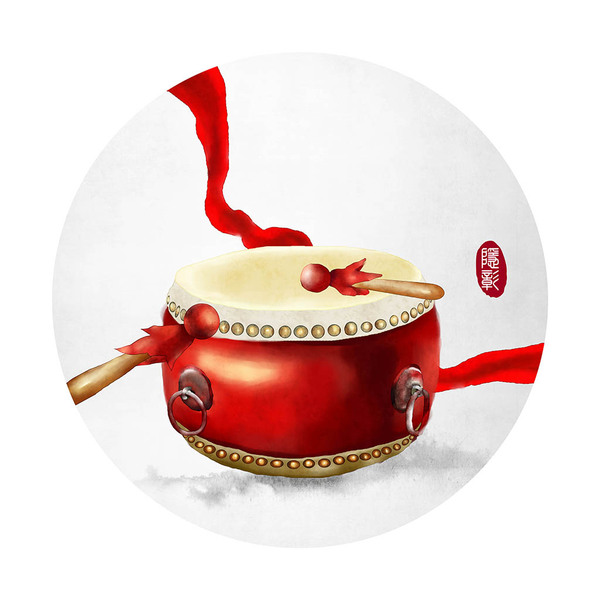 鼓风鼓韵-鼓文化展示插画-国风插画