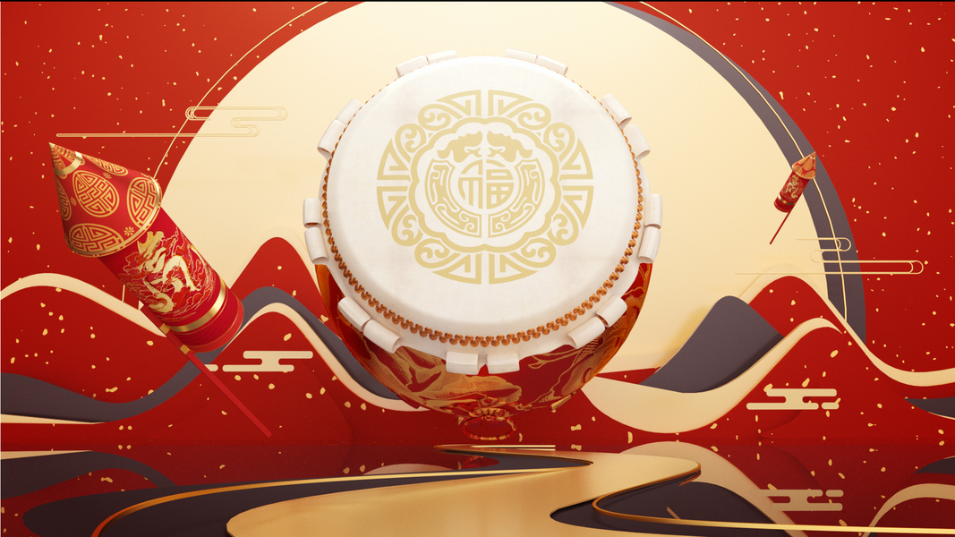 中国鼓大红鼓过年喜庆红红火火中国红中国民俗