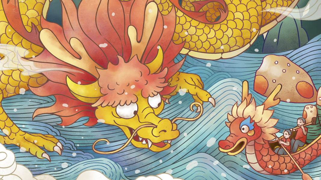 原创-端午节海报-青龙-粽子-中国风插画