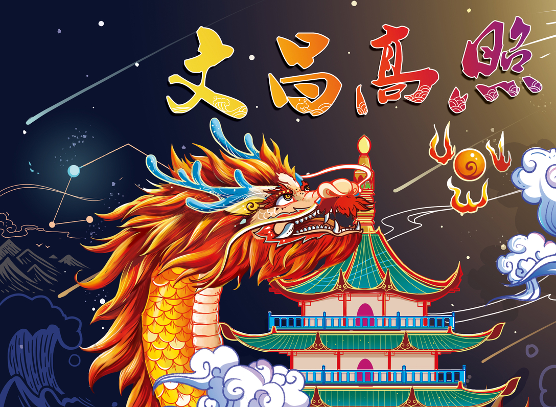 家乡宾阳炮龙节国潮插画