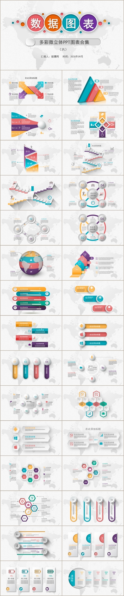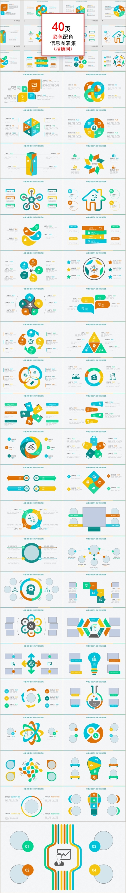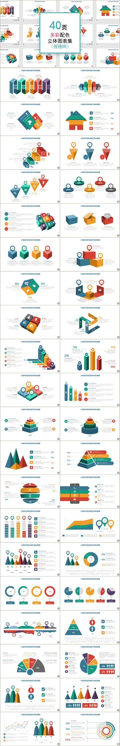 40套多彩时尚丰富素材商务通用可视化PPT图表套装