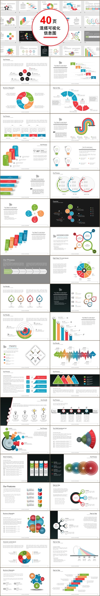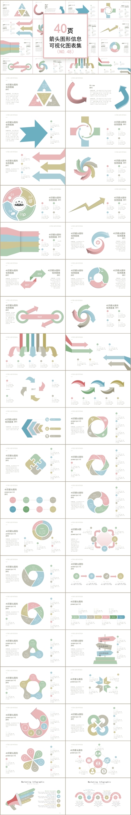 时尚多彩40页箭头图形信息可视化PPT图表合集