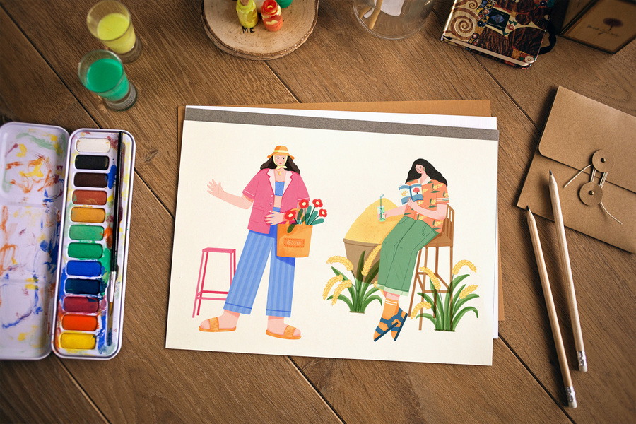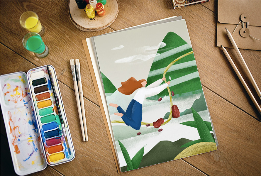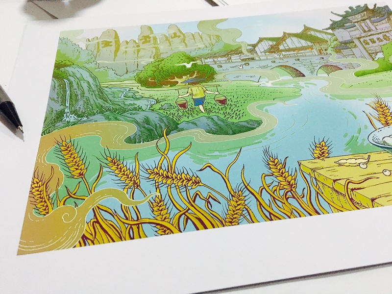 插画习作(二)-夏至、小暑、情人节、立秋、火锅节